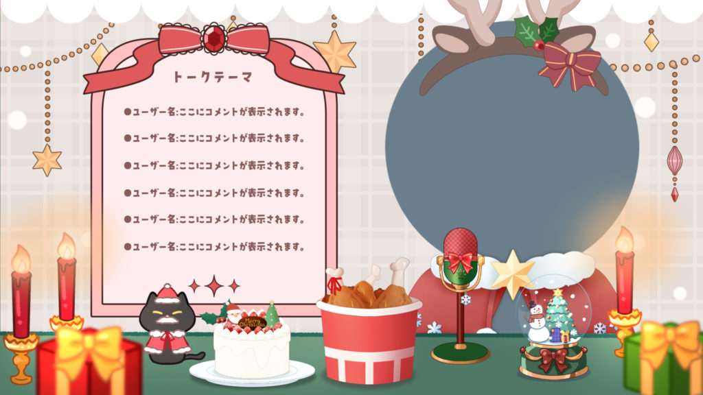 背景、コメント欄、枠、画像素材……等、様々なデザイン、パターンの素材を自由に組み合わせてオンリーワンの配信画面、告知画像、サムネイル画像を作りませんか?