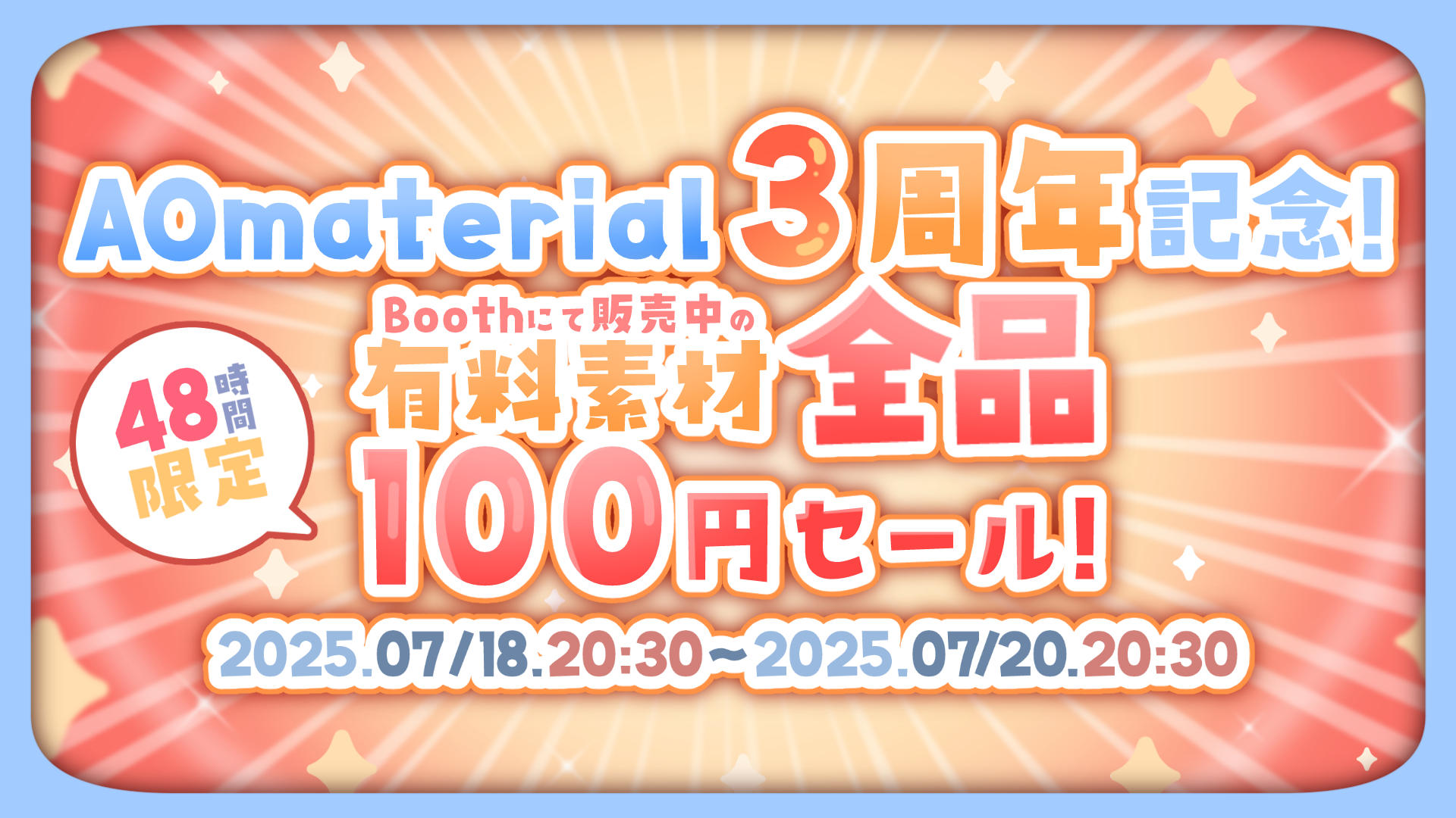 めでたくて嬉しいので、Boothで販売している有料素材を48時間限定全品100円セールを実施します!