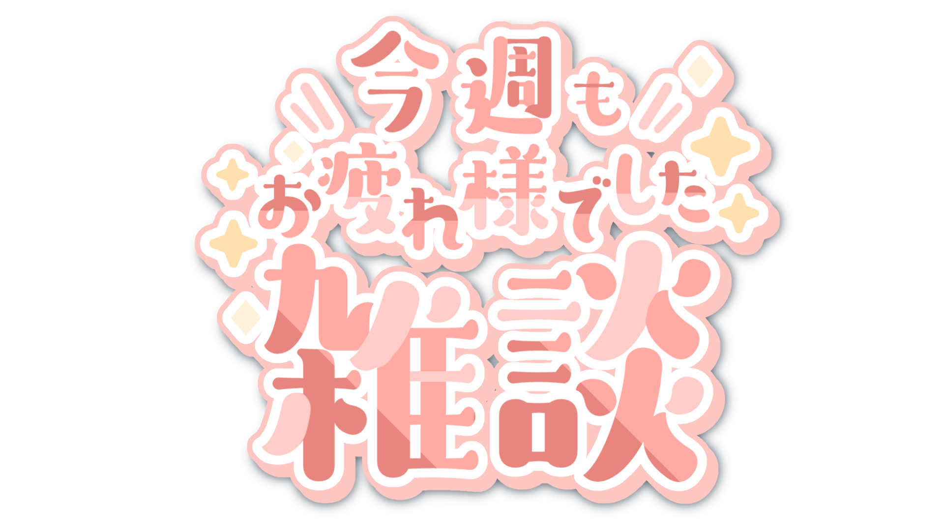 スポンサー 今週もお疲れさまでした雑談ロゴ全12種 その他画像・文字素材等 X Facebook0 はてブ0 Pocket0 LINE コピー 2026.03.27 スポンサー 週末の配信におすすめなロゴです!その他ロゴ系素材も多数配布中!使用フォント:ヤマナカデザインワークス様 ぱぐのみんちょ