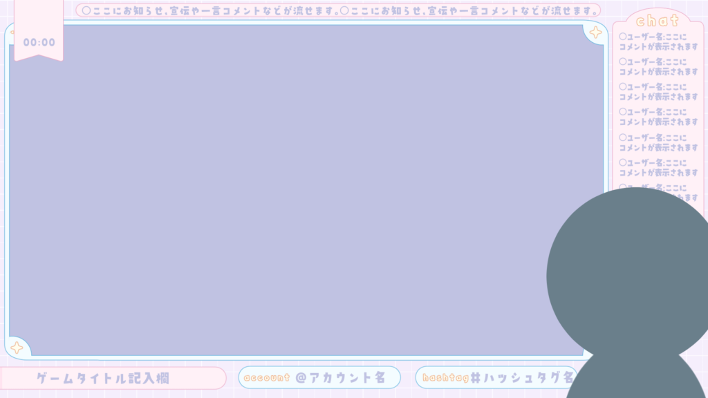 スポンサー かわいいきらきらフレームなゲーム配信用枠全7種 その他画像・文字素材等 X Facebook0 はてブ0 Pocket0 LINE コピー 2026.03.28 スポンサー これ1枚でOKな便利なゲーム配信画面枠です!使用フォント:ヤマナカデザインワークス様 やわらかドラゴン
